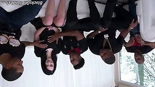During an interracial gang bang a white girl takes on every black stud in town