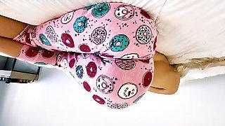 My shameless girlfriend attempts on a new pair of silk stockings