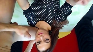 Japanese girl eats ass and makes him spunk with a handjob. HD