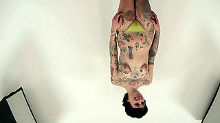 Busty emo bitch with bunch of tattoos on her body jerks greedily