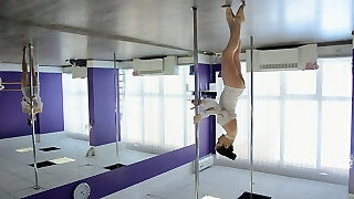 Horny pole dancer Irina Brovkina flashes her really sexy bootie during experience