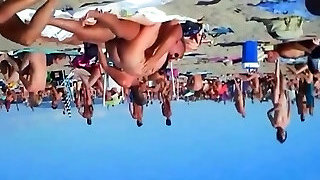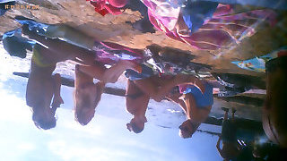 Upshorts dick flash for group of girls on beach