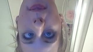 Slim nymph with juicy titties takes a shower and masturbates there