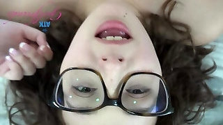 Cute Petite Curly Girl In Big Glasses Leaps On a Slick Dick Like Crazy
