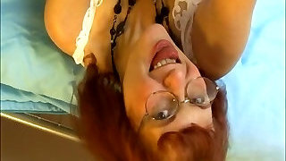 Lusty inexperienced blond haired granny in glasses masturbates her twat