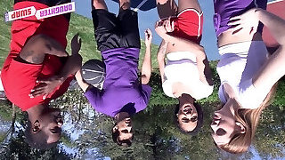 Interracial stepfamily group sex after sport.