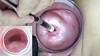 A endoscope chinese camera is plunged in the cervix to watch inside the uterus.