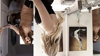Playful long haired blondie maid greets tongue fuck from her sexy landlord