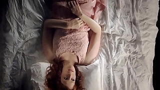 Adorable redhead miss Sunshine takes her clothes off and reveals her obese shapes