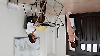 Cleaning mansion and cooking breakfast as she gets fucked
