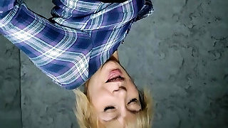 Giant Cock - Shiny Tan Stocking Blonde Bubble Butt Teen Prone Man Sausage Through Crotchless Shiny Nylon Tights By Huge Cock Moans For Cum On Ass