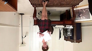 Cute Chinese Ka Lee Taking Plaid Skirt To Shows Gams and Pantyhose