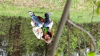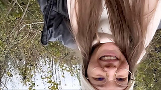 Buxom amateur blonde in white dress just loves urinating in the parks