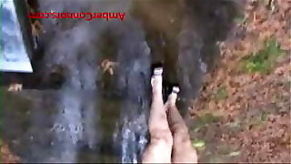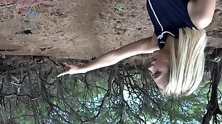 Sassy brunette gal in jeans Rebecca pees in the forest
