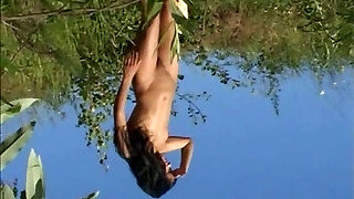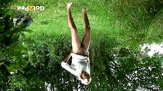 Sinful titless but hot amateur gal is all naked to pee outdoors