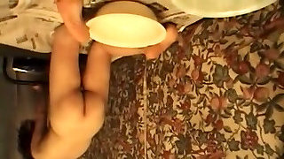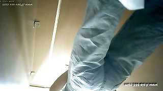 Chunky white slut climbs on a shitter to pee and gets filmed on web cam