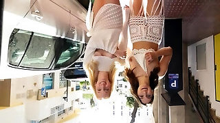 Unexpected threesome with two beautiful teen nextdoor girls in public