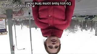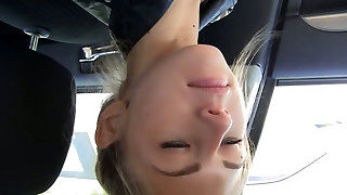 Kinky pervert picks up Claudia Bavel by showcasing his stiff and meaty dick in the car