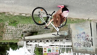 Hot Slim Blondie Hoe In a Bodysuit Rides a Young Man's Impaler And Gets Creampied In an Unfinished House