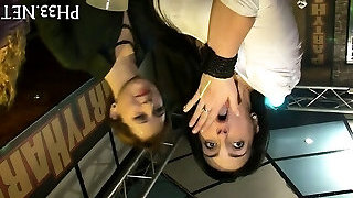 Lezdom teen victim gagging on dildos