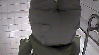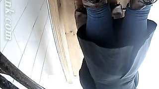 Covert cam video caught big ass of Russian brunette in the public toilet