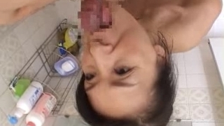 Super-cute Russian teen in the restroom puts manmeat in her mouth