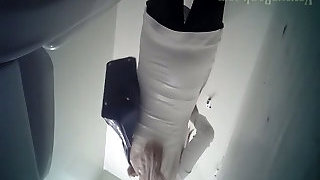 Busty super-cute white lady in the toilet room got her ass filmed on web cam