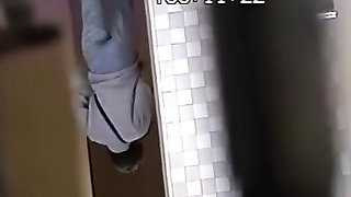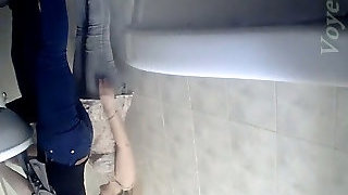 Two white stranger girls in the public restroom filmed on hidden web cam