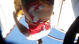 Brunette cool white girl with xxl booty secretly filmed in the cabin