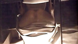 The naked maid cleans the toilet and shower. Maid without underpants. c1