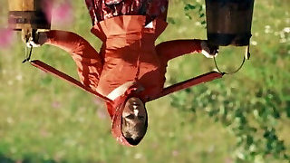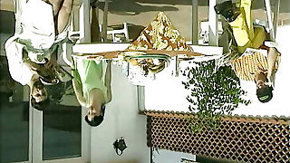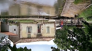 Hairy chicks having vintage outdoors threesome sex in the backyard