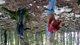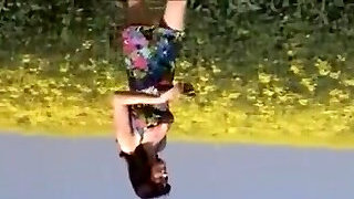 junge brunette besorgt es sich mit ihrem faux-cock am badesee