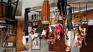 Nasty maid in jaw-dropping lingerie set with pantyhose and garters fucks like nobody