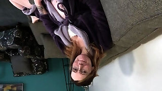 Wild short haired ginger sexpot takes big fat spear in her poon for a ride