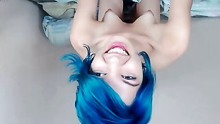 Busty Blue Haired Emo Teen Cumming to Ejaculation on Webcam