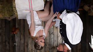 Mischievous village girlfriend having sex fun with nasty boyfriend in the shed