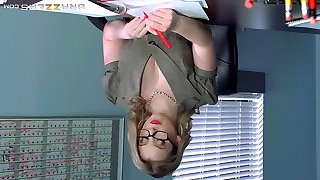 Horny secretary Lanna with glasses gets plowed hard on the table