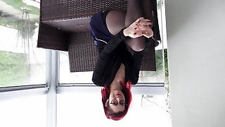 Perverted brunette in glasses and college uniform Sasha Sparrow wanna go solo