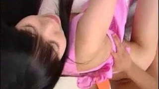 Furry Japanese babe sucks and gets boned