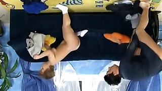 Lewd lesbian dolls are pleasing one another in arousing amateur fuck video