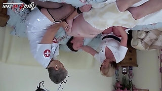 Horny nurses enjoying hardcore sexual intercourse with blowjob and spunk