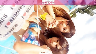 Two slim Asian sweeties Amina Kimura and her GF have fun in the pool
