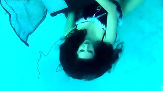 Some Japanese black haired damsels have nothing being fingered in the pool