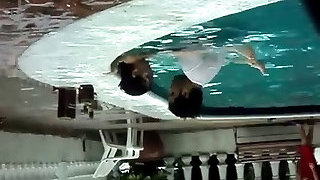 Man did not know that one could swim bare in a public pool, but Milf proved it