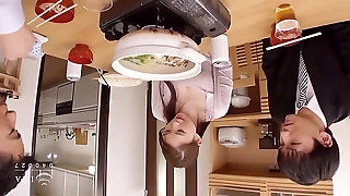 Asian Secretary Jerks And Gets Wet Pussy Rammed By Her Boss On The Kitchen Table