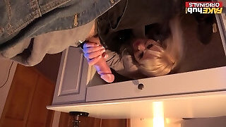 Aroused Sexy Fit Blonde MILF Catches a Robber By His Cock And Makes Him Satiate Her Cunt
