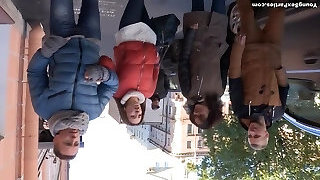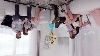 Delicious teen ladies fucked brutally in a doggy position in foursome romp clip