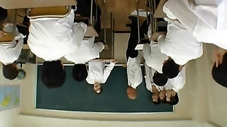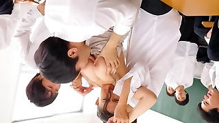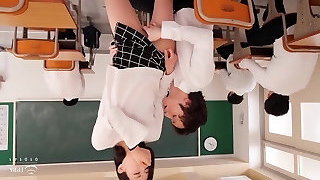 Lezdom Asian student fucks teacher in ass in classroom