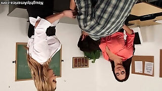 Two sexy college damsels seduce their teacher at his office