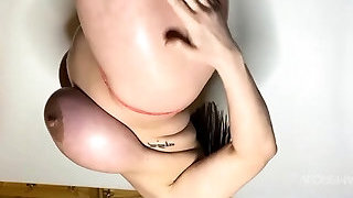 Chubby Oiling Her Faux Tits In A POV Shoot Indoors
